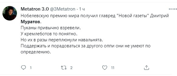 Муратов в сравнении с Навальным - диванный оппозиционер, мужественно выглядывающий из-под плинтуса.