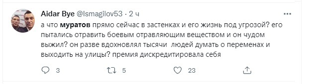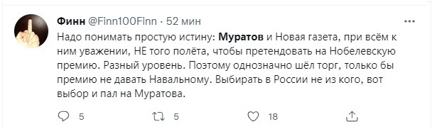 Вот именно. Я был сегодня в приятном шоке, что Муратову дали столь высокую награду. Главное, это защитит его сейчас от возможного прессинга со стороны властей.