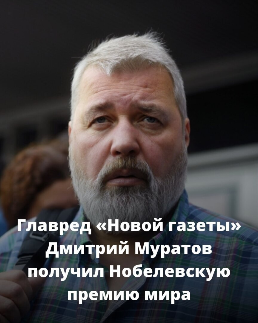 Нобелевскую премию мира присудили главному редактору «Новой Газеты» Дмитрию Муратову, сообщается на сайте Нобелевского комитета в Осло.