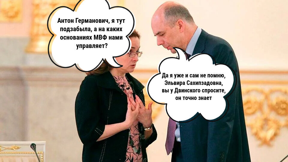 Так вот, я неоднократно в комментариях просил показать мне хоть какие-то законы, нормы, соглашения, по которым ЦБ и минфин вынужден выполнять указания МВФ. А также объяснить, почему эти документы, если они существуют, до сих пор не были отменены Президентом, у которого в госдуме большинство, и он способен не только в любой момент принять или отменить любой закон, но даже, как показала недавняя практика, изменить конституцию.
