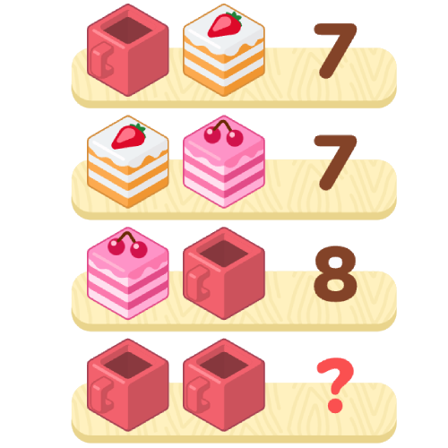 Сумма 2 красных кружек равна 8