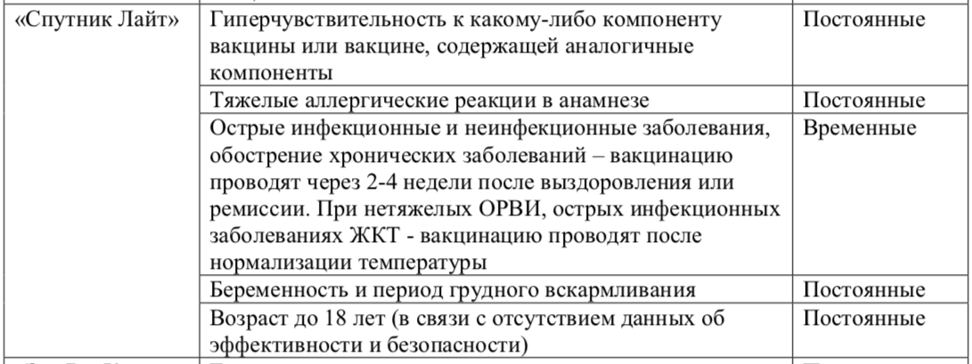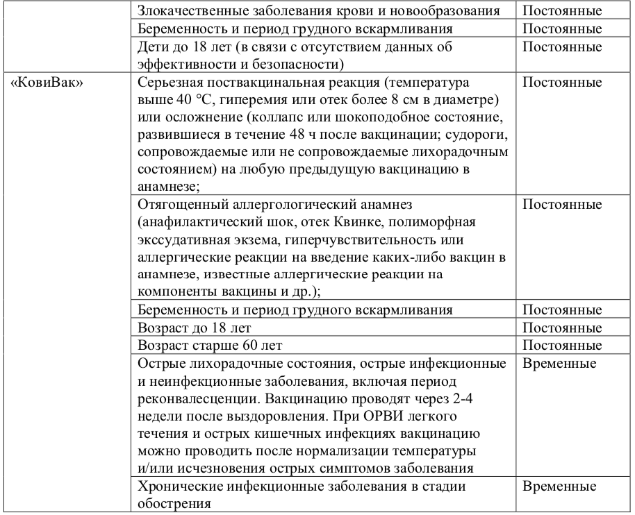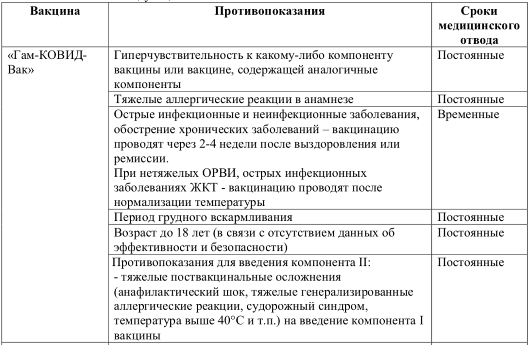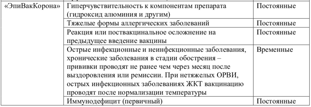Вот эти противопоказания и сроки медицинских отводов от вакцинации при них (постоянные или временные):