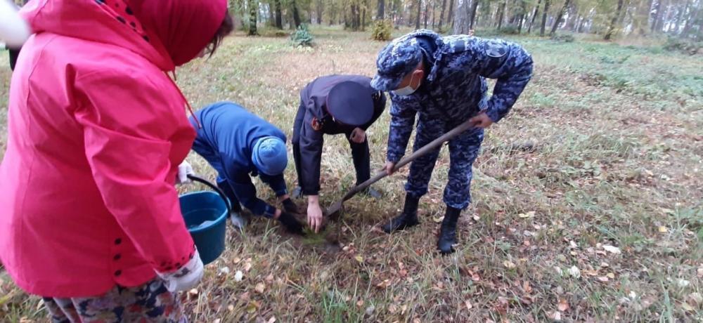 В селе Николо-Березовка (Республика Башкортостан) в поддержку экологической акции «Зеленая Башкирия» росгвардейцы с семьями озеленили Парк Победы.