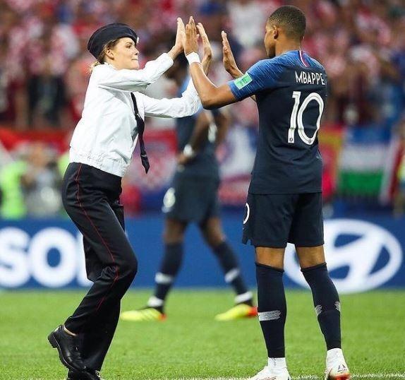 Во время финального матча чемпионата мира по футболу на стадионе «Лужники» в 2018 году участница Pussy Riot в полицейской форме выбежала на полесо страницы Петра Верзилова в Instagram****