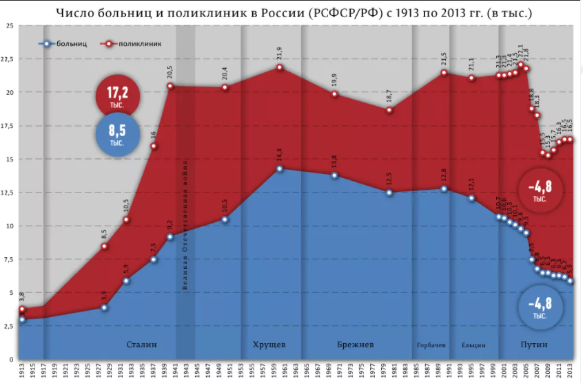 А вот здесь про сокращение коечного фонда и больниц при Путине.