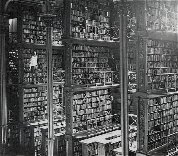 ...да, Вместимость до 300 000 книг. Здание построено в 1874 г. и должно было стать оперным театром, но что-то не сложилось и получилась библиотека -- просто огромная по тем временам.