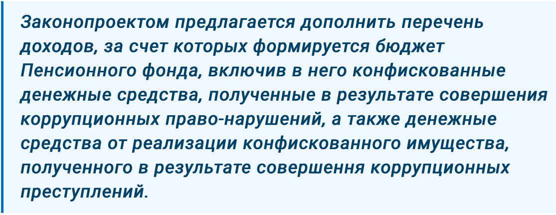 " Как же хорошо теперь будет ПФР, если это всё станет реальностью! У ПФР будет дополнительный источник формирования бюджета! Какой денежный поток хлынет в Пенсионный фонд, ведь мы все знаем о масштабах коррупции в нашей стране. Главное только, чтобы этих коррупционеров ВЫЛАВЛИВАЛИ наши правоохранительные и контролирующие органы и сами не подсаживались на взятки, отмазывая этих самых коррупционеров, сидящих уже у них на крючке! ДЕНЕГ БУДЕТ ОЧЕНЬ МНОГО в ПФР. И тогда уже никто не сможет хайповать на теме отмены пенсий в России. Тогда может быть и будет возможность вернуть обратно старый возраст выхода на пенсию 55/60, да индексацию пенсий работающим пенсионерам... А может быть и пенсии нам, простым россиянам повысят... А что? Чем чёрт не шутит? Главное, чтобы эти деньги не уходили на строительство новых "пенсионных" дворцов, рост штата сотрудников ПФР и необоснованного повышения зарплат и премий его сотрудников."