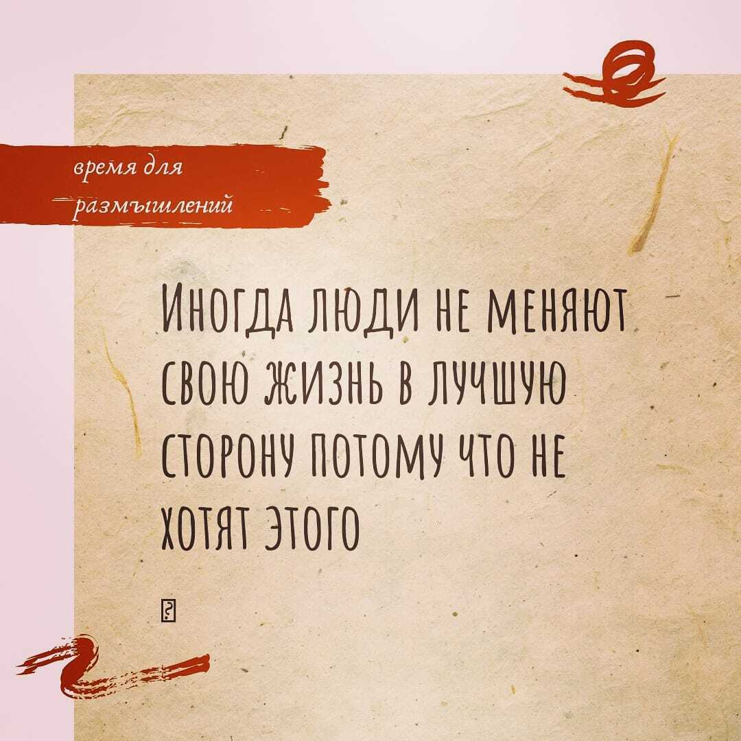 Иногда люди не меняют свою жизнь в лучшую сторону, потому что не хотят этого