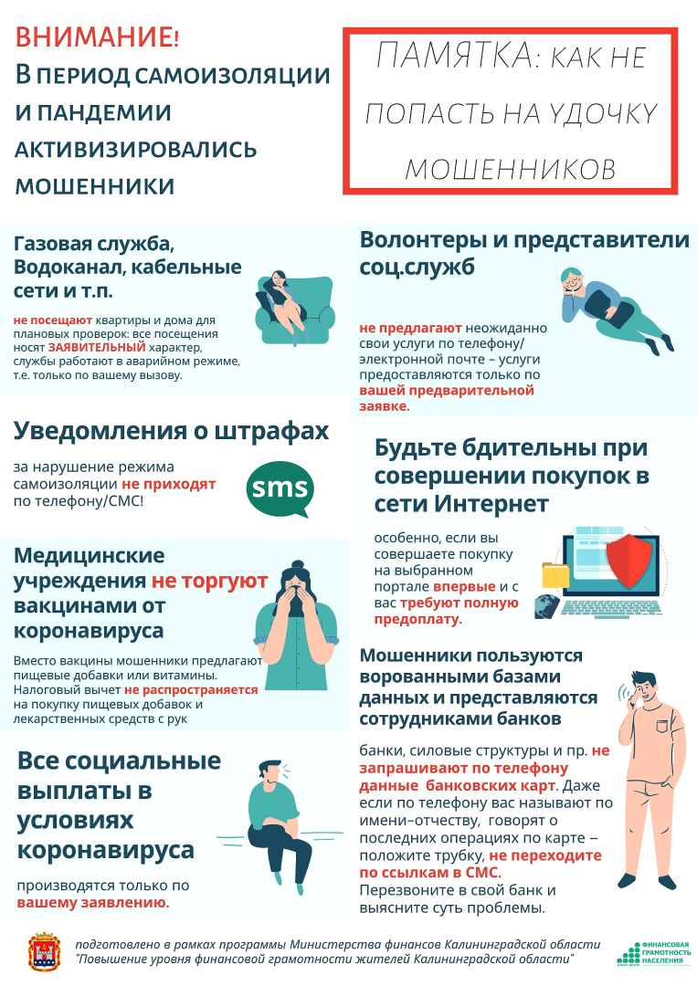 Прежде всего, это фиктивные предложения о продаже несуществующих товаров, услуг, социальных льготах. Гражданам предлагают и чудо-очистители воздуха, убивающие вирус, и чудо-маски со 100-процентной защитой, и чудо-лекарства, которые помогают вылечиться за 1-2 дня и много чего другого. Условие - предоплата. Соответственно инновационных чудес никто не получает, а кошельки и карты облегчаются на существенные суммы денег.