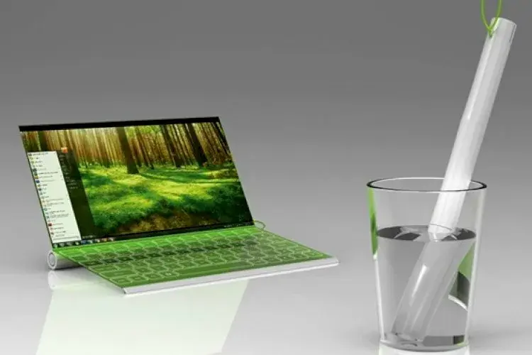 Пока это только дизайн ноутбука, но идея поражает воображение. По задумке, такой ноутбук должен заряжаться от стакана воды, да еще и вырабатывать при этом кислород! Будем оптимистами и начнем мечтать о таком экологичном чуде уже сейчас!