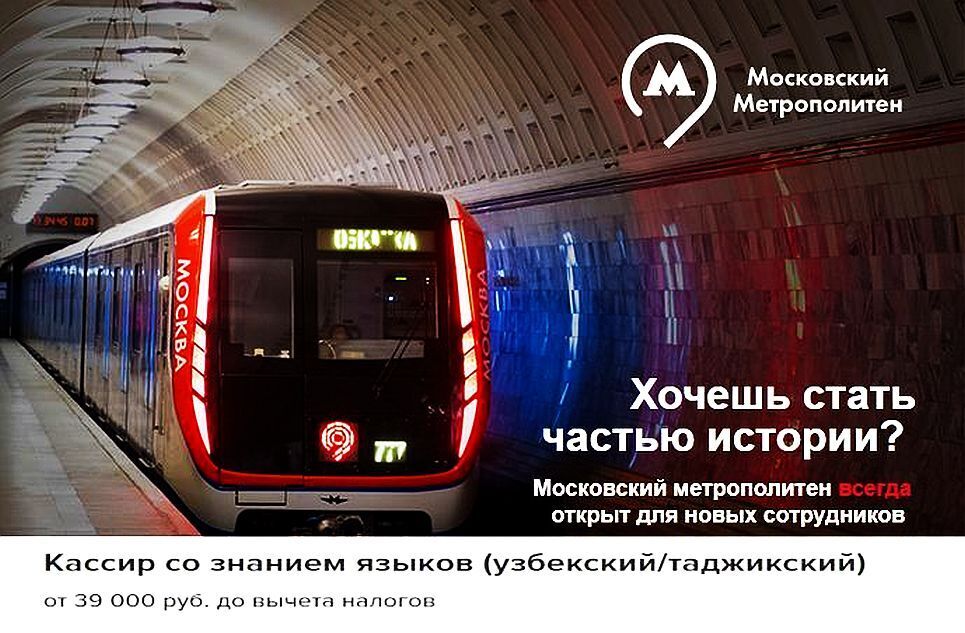 «Добро пожаловать, мигранты!» В метро Москвы требуются кассиры, знающие узбекский и таджикский язык. Зарплата от 39 000 рублей в месяц