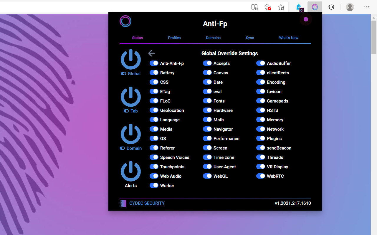 Ссылка - https://addons.mozilla.org/en-US/firefox/addon/cydec-security-antifingerprint/