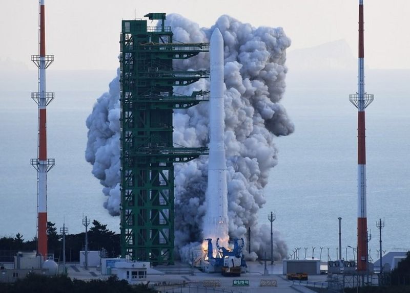 Корейская ракета-носитель II, известная как Нури, взлетела из Гохына, примерно в 500 км к югу от Сеула.