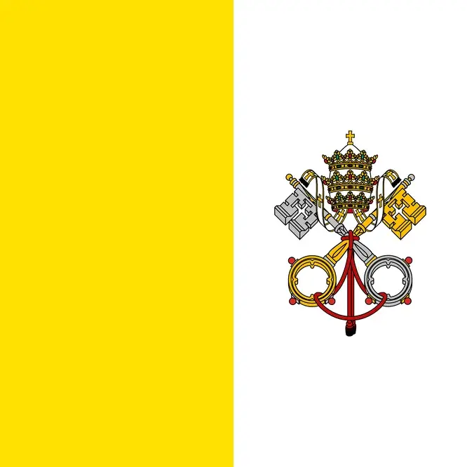 Флаг Ватикана – второй (из двух) квадратный флаг в мире. Он состоит из двух равновеликих вертикальных полос — жёлтой и белой. В центре белой полосы — герб Ватикана.