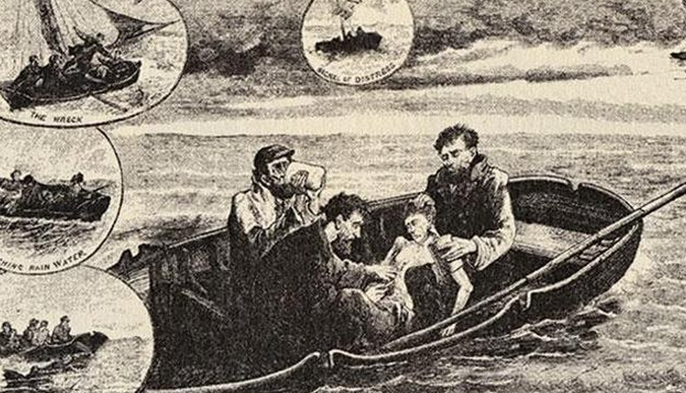 Вот так и оказались четверо спасённых в шлюпке с парой навигационных приборов, судовым журналом, банками консервов бобов и турнепса, но без глотка питьевой воды.
