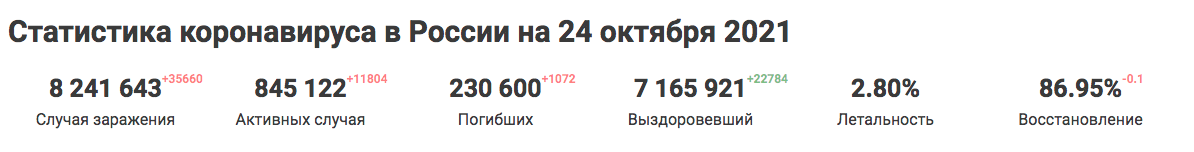 Коронавирус в России на 24 октября 2021: сколько заболевших на сегодня
