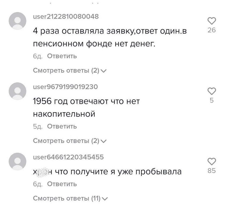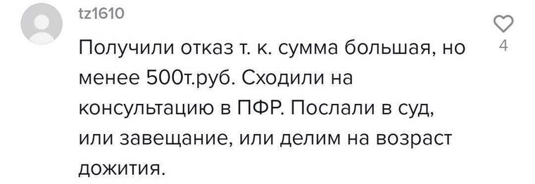 В комментариях к ролику пользователи начали обсуждать данный способ получения накопительной пенсии. Однако некоторые пользователи заметили, что в ПФР зачастую отказывают в такой выплате. URA.RU направило запрос в ПФР с просьбой прокомментировать данную информацию. На момент публикации ответа не поступило.