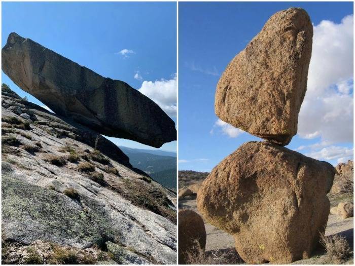 Висячие камни выглядят так, будто их держит невидимая сила. Их в изобилии можно найти на горном хребте Сан-Бернардино, что в Калифорнии. Многотонные камни держатся на тонких перешейках, которые непонятно как не ломаются под таким весом.