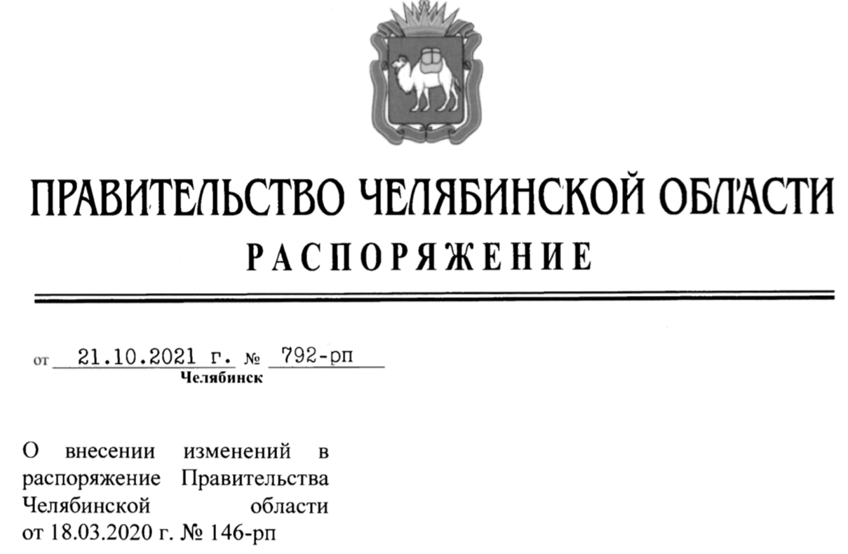 В целях реализации пункта 4 Указа Президента Российской Федерации от 20 октября 2021 года No 595 «Об установлении на территории Российской Федерации нерабочих дней в октябре - ноябре 2021 г.» сегодня на сайте правительства Челябинской области опубликовано распоряжение Председателя Правительства Челябинской области A.Л. Текслера за №804-рп