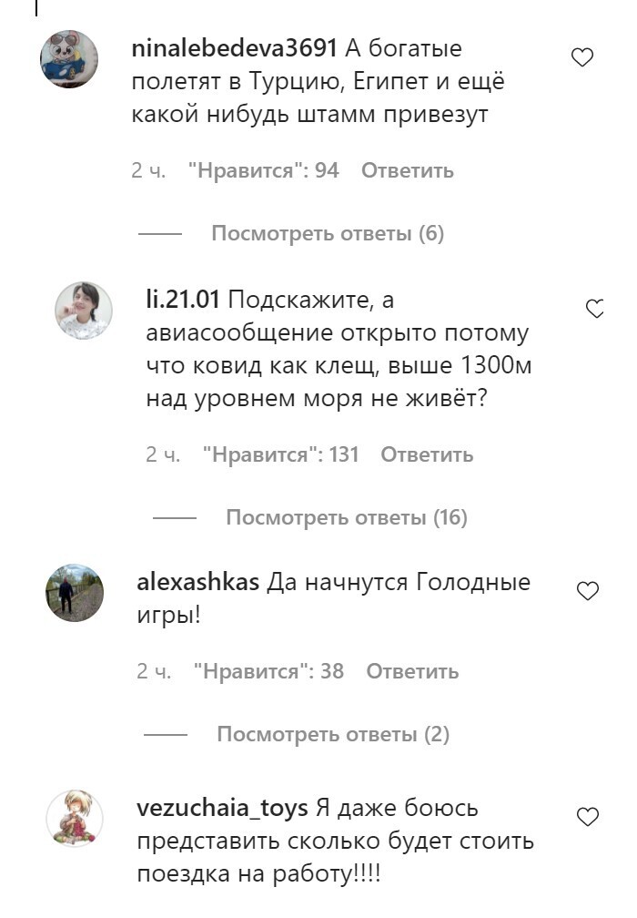 И самое удивительное – многие жители Хакассии отрицательно отнеслись к этим достаточно жестким мерам по борьбе с ковид. Главе республики задают вопросы, например, почему такие меры ограничения только в их республики, а жители других регионов закупают авиабилеты в Турцию, Египет, туры по стране, то есть готовятся к развлечениям, а не ограничениям?