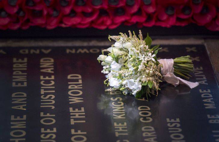 Это еще одна традиция, которую заложила мать Елизаветы II. В день своей свадьбы Элизабет Боуз-Лайон перед входом в Вестминстерское аббатство возложила свой букет на могилу неизвестного солдата. Таким образом она почтила память своего брата Фергюса. Он погиб в битве при Лоосе в 1915 году.