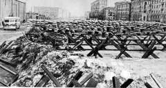 Город ощетинился стальными противотанковыми «ежами» и надолбами. Баррикады перегородили улицы и въезды в столицу. Сотни тысяч москвичей участвовали в строительстве укреплений.