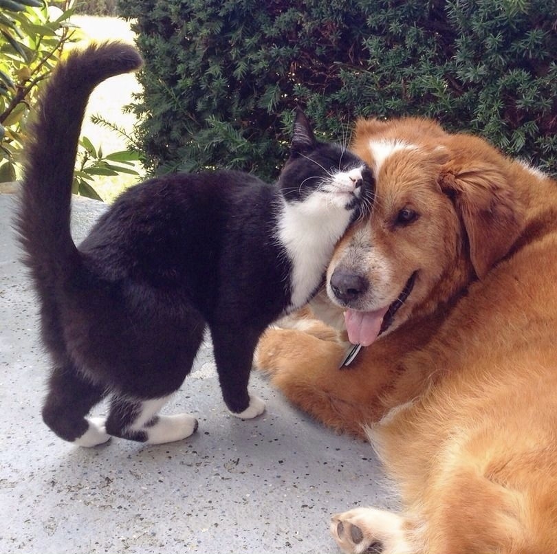Мой кот Тимофей которого мы подобрали подружился с моими собаками, они его приняли.