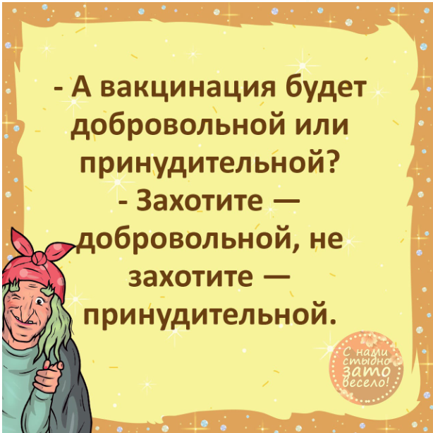 Ирина, самое забавное, что при этом поборники вакцинации на каждом углу, из каждого утюга орут об агрессивности "антиваксеров", как они называют противников вакцинации. Наглядное подтверждение этому - сегодняшнее шоу Малахова на 2-м канале зомбоящика. Смотрел это шоу в надежде услышать хоть что-то путное в защиту вакцинации, но не тут-то было! Опять та же обрыдвившая жвачка: заразитесь, заболеете, заразите родных и все умрёте. Такое впечатление, что всем дали сверху команду: стращать, что есть мочи! Вот и те же пресловутые 11 врачей с их обращением к публичным противникам вакцинации