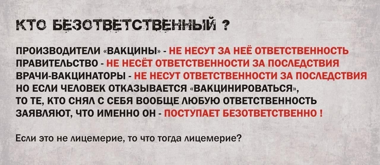 Все мои знакомые, кто привился серьезно болеют, с последствиями.. Кто не привился или не болеют, или переболели дома ,спокойно и уже давно в строю, так сказать. ВОПРОС: кто понесет ответственность за принуждение к прививке, которая привела к заболеванию?