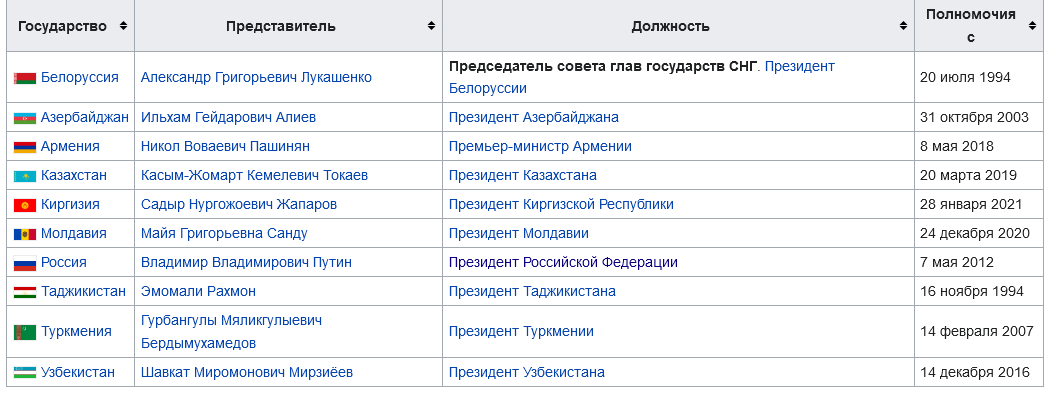 Совет глав государств СНГ — высший орган Содружества Независимых Государств, в который входят все первые лица государств — участников СНГ.