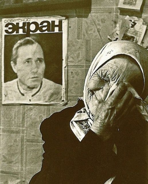 Этот снимок сделан в момент, когда ей сообщили о смерти Шукшина... Через год Ефимия Быстрова и сама умрёт, замерзнув на печке... Позже, жители деревни на её могиле установят памятник с фотографией-кадром из фильма.