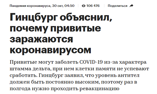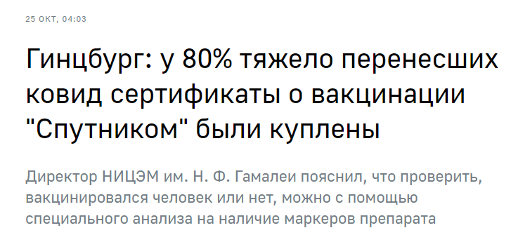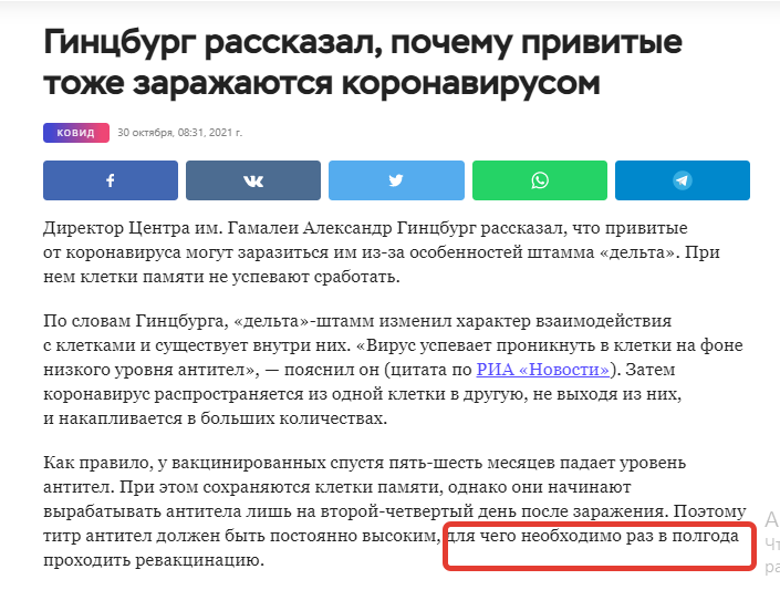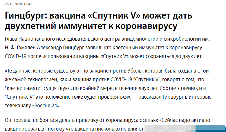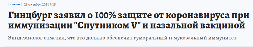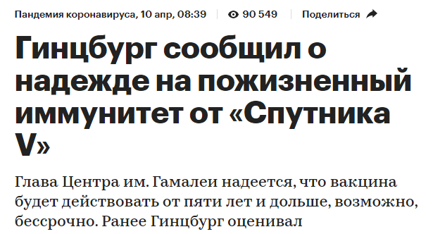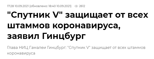 Вот возьмем, для примера, некоторые высказывания главы "Центра им. Гамалеи" - главного по вакцинам и уважаемого ученого - которые он сделал в течении короткого времени, и каждое заявление, на момент его высказывания, выглядело как чистая правда, но все в совокупности они заставляют задуматься о противоречивости, как минимум, а как максимум - просто о неподтвержденных научных фантазиях.