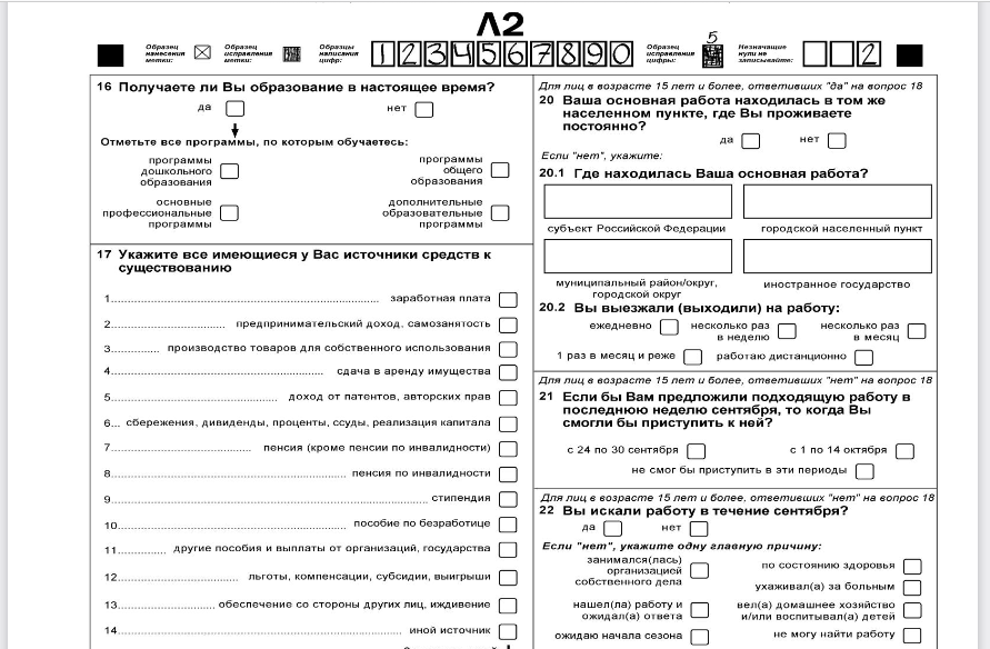 Анкета с вопросами (переписной лист) включает в себя более сорока вопросов. Первые вопросы в анкете вполне логичные. Они включают в себя ваши Ф.И.О. ,фактический адрес проживания, дата рождения, ваш пол, ваши дети, а так же другие люди проживающие в данном помещении. Как я понял, что если пишешь о тех кто проживает с вами вместе на данной территории, то надо заполнять так же переписной лист на каждого о ком вы заявили.