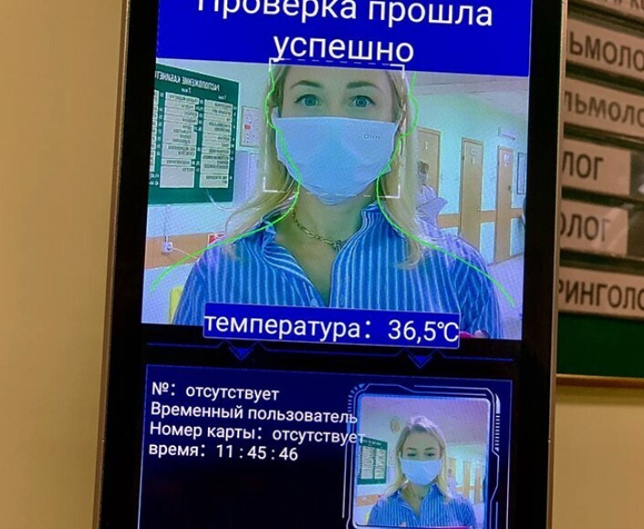 «Маруся», как ласково окрестили помощницу врачи, – это система на основе технологий распознавания лиц от местной компании TransNetIQ. Она встречает на входе пациентов и врачей медсанчасти, за доли секунды проводит осмотр, проверяет наличие маски у посетителей и бесконтактно измеряет температуру тела.