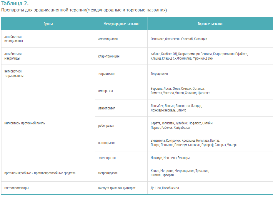 Препараты для эрадикации Helicobacter pylori