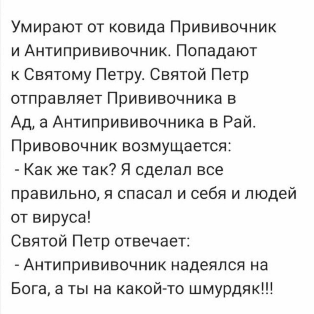 Получается по логике вещей, это не привитых стерильных граждан ограждают от носителей вируса привитых, чтобы не заразились. Именно так и высказалась начальник Роспотребнадзора Хакасии.