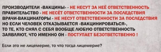 Нам всем из каждого чайника и утюга твердят о необходимости и полной безопасности прививки от Ковида. Но перед вакцинацией я обязан подписать документ, что я беру на себя всю ответственность от возможных последствий прививки! Класс! Супер! Мы тебя уколем, но если что то случится-то сам виноват, и помогать тебя государство не будет.