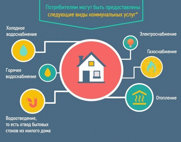 Такой договор может быть заключён на предоставление услуг водоснабжения (холодного и горячего), электроснабжения, водоотведения, отопления, газоснабжения, а также услуг по обращению с ТКО.