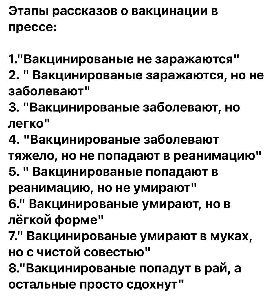 Недавно, слушала выступления Шойгу, который заявил о 90 % в его ведомстве привитых и при этом о снижении смертности только в 2 раза. Это как? Они испытывают экстаз от того, что не попали в их число, независимо от того делали они прививку или нет.