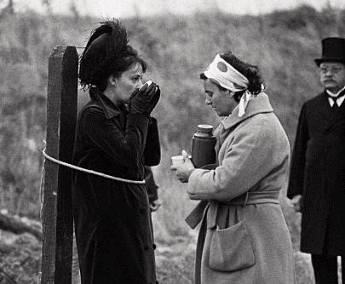 Тем временем расстрельный взвод был уже построен. Перед женщиной стояло двенадцать солдат, заметно смущённых её спокойствием.