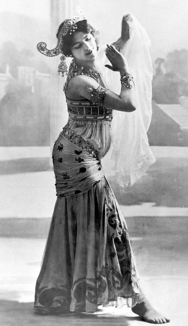 Конечно, у Маргареты тут же появилось множество богатых поклонников. Один из них, французский олигарх, предложил танцовщице-самоучке выступить в его Музее восточного искусства. Магнат, знающий в шоу-бизнесе толк, выбрал красавице сценический псевдоним — именно он нарек её мистическим именем Мата Хари. В переводе с яванского оно означало «око утренней зари». Маргарета добавила таинственности своему образу: она повсюду начала рассказывать историю о том, как её мать, 14-летняя индианка, умерла при родах, как она сама жила в буддийских храмах, где её и обучили необычным и экзотическим танцам.