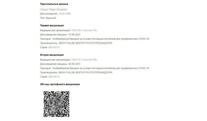 Сертификат о вакцинации, содержащий QR-код, выдаются только в электронном виде на сайте Госуслуги после прохождения полного курса вакцинации (2 дозы).