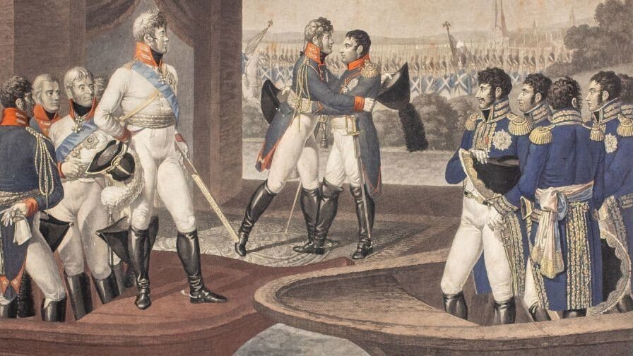 В то время как императоры, расположившись в шатре, уверяли друг друга, что они "братья" и что они братским усилием обеспечат благоденствие всего мира, другой друг Александра – Фридрих-Вильгельм, не приглашенный Наполеоном, с горечью вспоминал о потсдамской клятве на гробнице Фридриха Великого. Несчастный прусский король ездил верхом по берегу Немана и даже в рассеянности чуть было не утонул, пустив в воду своего коня.