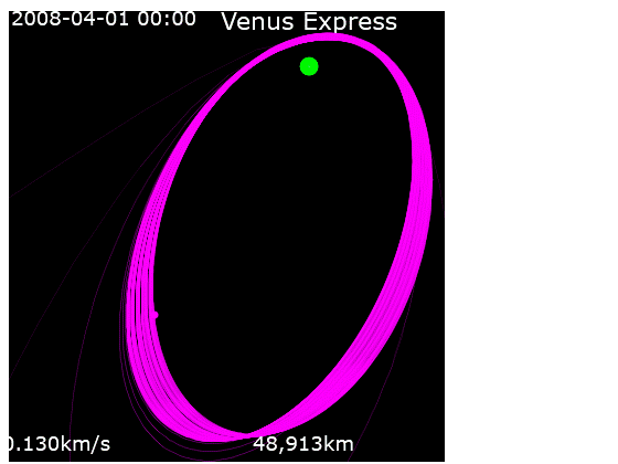 Траектория движения станции «Венера Экспресс» вокруг Венеры с 1 апреля 2006 года до 1 апреля 2008 года