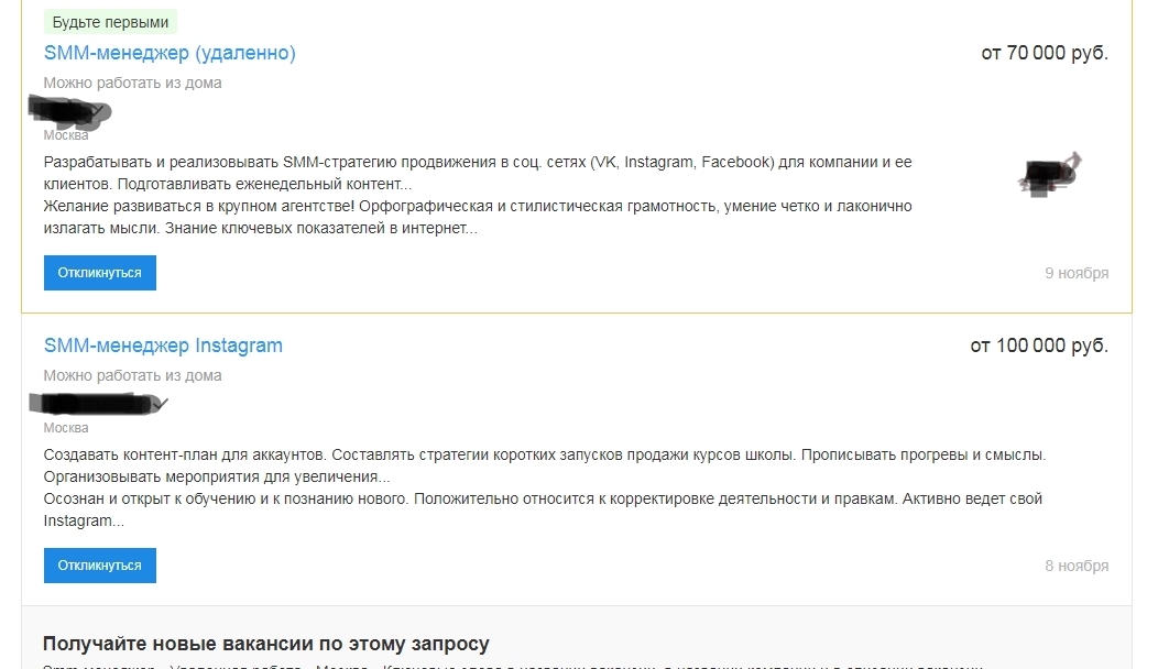 2. SMM-маркетинг. Создание своего блога в соц. сетях, либо раскрутка блога организации. Благо, на том же HH.ru также есть подобные вакансии, правда, нужен опыт и портфолио, доказывающие, что вы действительно умеете продвигать блоги в соц. сетях.