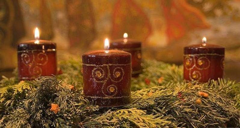 Из еловых веток делаем подобие круга. Он символизирует материальное богатство. В центре помещаем три красных яблока с воткнутой в каждое из них гвоздикой. Эта композиция приносит здоровье и заряжает жизненной энергией. Между яблоками поставьте свечу. Отлично подойдет аромасвеча в стеклянной чашечке. Ее огонь — это пламя вашей жизни и желания. По кругу, прямо на яблоки и ветки, насыпьте муку, которая с давних времен символизирует удачу и благосклонность высших сил.