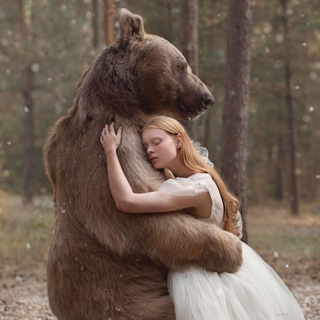 С ежиками я бы может и осмелилась сфотографироваться, а вот с волками и медведями нет..