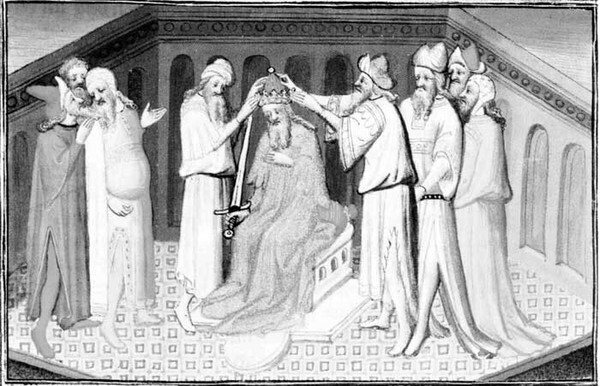 Миниатюра "Венчание Чингизхана на царство". («Книга чудес» Марко Поло, Национальная библиотека Франции.)