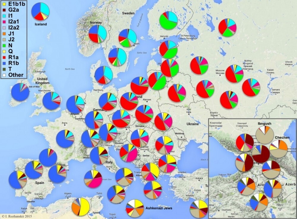 Начнём с последних открытий в области днк-генеалогии. Сама по себе она ничего не трактует и не интерпретирует, а просто показывает географическое распространение различных гаплогрупп (то есть общих днк-маркеров, которые передаются по мужской Y хромосоме от отца к сыну непрерывно вплоть до самого далекого общего предка). Так вот, согласно этим исследованиям среди наших соотечественников (в данном случае речь идёт о Центральной части России, где были расположены основные древнерусские города) представлены носители славянских, балтийских, кельто-германских, скандинавских, кавказских, семитских и некоторых других гаплогрупп (в порядке убывания). А вот традиционно азиатские гаплогруппы на территории европейской части России представлены в процентном отношении стремящемся к НУЛЮ. Иными словами — никаких следов! Что было бы совершенно невероятно в случае 300-летнего господства степных кочевников на наших территориях. На этом в общем-то вопрос о татаро-монгольском иге можно и закрыть, но есть и другие аргументы.