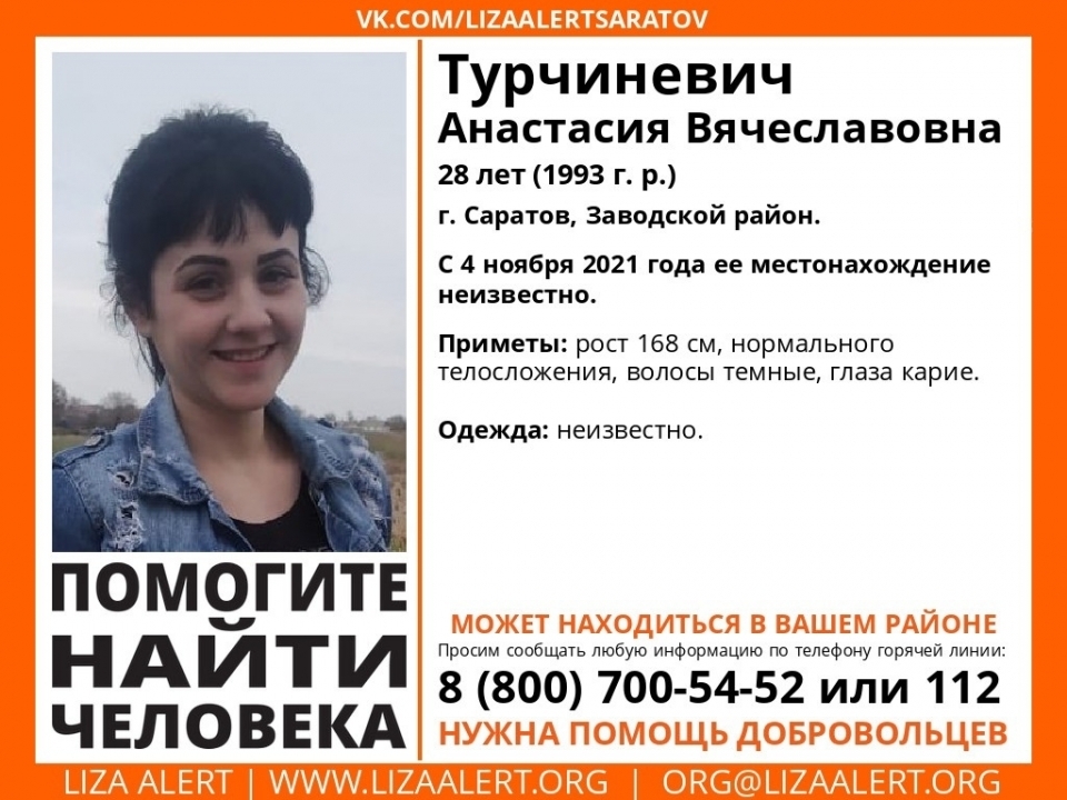 В Заводском районе Саратова пропала 28-летняя Анастасия Турчиневич.